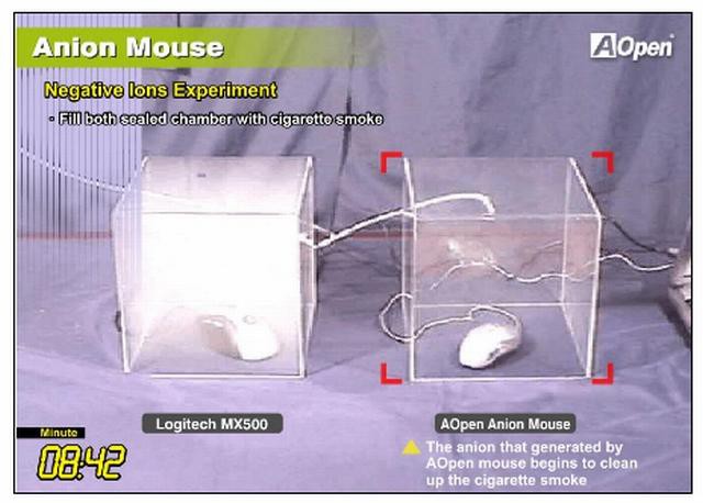 delovno okolje je eden izmed ciljev pri AOpnovem razvoju novih izdelkov, zato so razvili anionsko miško, ki zaradi oddajanja negativnih ionov dobrodejno vpliva na zdravje. Miška z oddajanjem milijona negativnih ionov na kubični cm v radiju 50 cm izenačuje vpliv pozitivnih ionov. Negativni ioni krepijo telesne celice in imunski sistem, urejajo vrednost pH, čistijo kri ter izboljšujejo prebavo. (aNET)