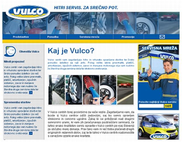 Nova spletna stran je opremljena z aktualnimi novicami in promocijami, ki se odvijajo v verigi hitrih servisev Vulco, s predstavitvijo asortimana izdelkov in storitev, opremljena pa je tudi z iskalnikom najbližjega Vulco servisa, ki jih lahko iščemo po omrežni skupini. Večji del Vulco članov ima tudi lastne spletne strani, do katerih vas pripeljejo povezave s centralne Vulco strani http://www.vulco.si/"">www.vulco.si.