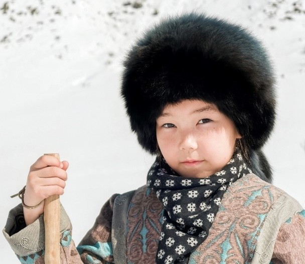 Fotografija ujame trenutek srečanja dveh oseb. Otrok stoji na zasneženi ravnici, greje ga sonce, oblečen je v tradicionalna oblačila Altay. Avtor kaže veliko zadržanost. Ne projicira svojih občutkov, ampak pusti, da zasije otrokova osebnost.
