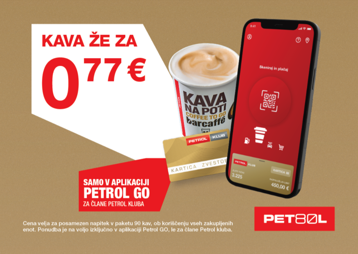 Družba Petrol je v začetku letošnjega leta v aplikaciji Petrol GO ponudila paketni nakup kave in avtopranja. Z izbiro paketa si lahko uporabniki znižajo ceno kave na vsega 0,77 € na lonček – brez naročnine, brez vezave. Ponudba velja na vseh Petrolovih prodajnih mestih v Sloveniji in na Hrvaškem, ne glede na velikost napitka. Z nakupi kave uporabniki zbirajo Zlata zrna, s katerimi je vsaka šesta kava brezplačna, z zbiranjem Zlatih točk pa lahko te kadarkoli zamenjajo za brezplačne napitke.