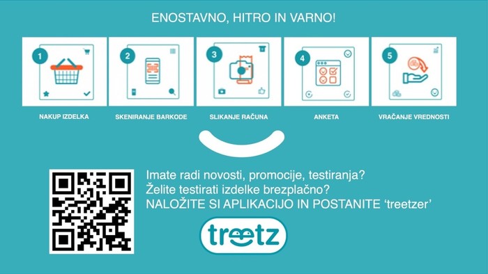 Si želite testirati izdelke in podati svoje mnenje o njih? Želite to storiti povsem brezplačno? Za uporabnike aplikacije treetz je uporaba povsem preprosta. Naložite si aplikacijo treetz iz platform iOS ali Google Play. Registrirajte se in izpolnite svoj profil ter vnesite svojo številko računa za povračila kupnin. Aplikacija vam javi, kdaj je na voljo nova kampanja. Če vas izdelek zanima, ga v aplikaciji rezervirate. S potrditvijo rezervacije imate 3 dni časa, da opravite nakup in oddate mnenje. Ob nakupu enostavno v aplikaciji preverite BAR kodo izdelka in tako potrdite, da je le-ta pravi. Shranite račun in ga po uporabi izdelka preko aplikacije slikajte (ni nujno, da je ta izdelek edina stvar na računu). Oddajte svoje mnenje na 9 kratkih vprašanj, kar vam ne bo vzelo več kot 1 minuto, in stvar je zaključena. V roku 7 dni boste prejeli vračilo kupnine na vaš račun. Vaše iskreno mnenje je tako nagrajeno. Vsi ljubitelji novosti in tudi vsi tisti, ki se želite najprej prepričati o izdelku pred rednim nakupovanjem, ali pa ste preprosto le radovedni, ste vabljeni.