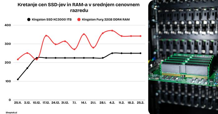 28. 2. 2026 - Sestava računalnika v Sloveniji je v samo treh mesecih podražila tudi do 30 odstotkov, kaže primerjalna analiza cen računalniških komponent platforme Shoptok.si.