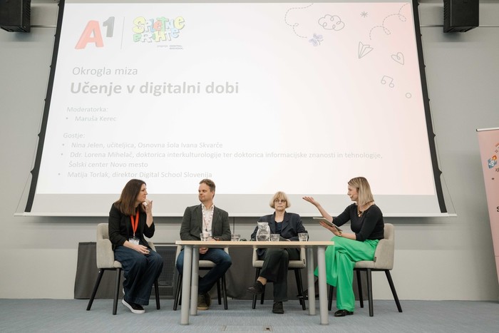 Ravno zato je pomembno, da otroke in mladostnike opremimo s potrebnim znanjem za varno in odgovorno rabo digitalnih tehnologij. Kako se tega lotiti in kako (naj) izgleda poučevanje v digitalni dobi, so se v sklopu okrogle mize pogovarjali Nina Jelen, večkrat nagrajena učiteljica, ddr. Lorena Mihelač, doktorica interkulturologije in doktorica informacijske znanosti in tehnologije, in Matija Torlak, direktor Digital School Slovenija. Ob koncu konference je Matija Torlak predstavil še konkretna digitalna orodja, ki učiteljem omogočajo učinkovitejše predajanje znanja in lažje vključevanje tehnologije v vsakodnevni učni proces, osnovnošolska učiteljica Maja Kodarin pa je s prisotnimi delila svoje praktične izkušnje z rabo digitalnih tehnologij v učilnici.
