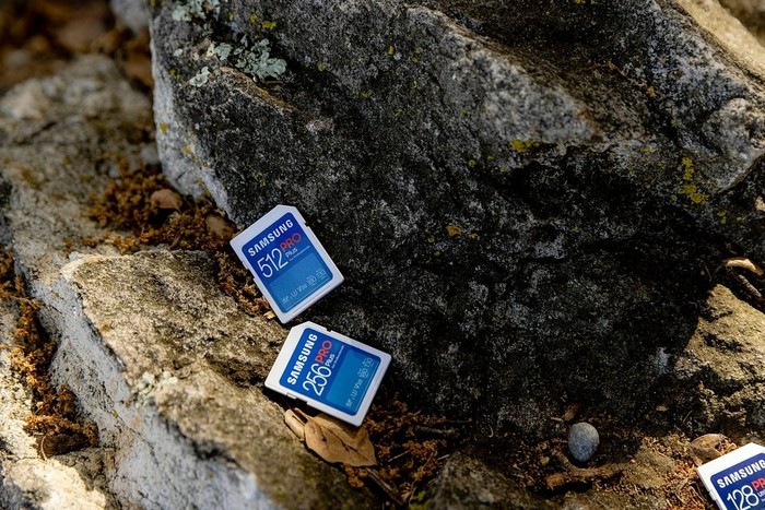 Kartice SD in microSD nudijo hiter ter enostaven način za razširitev prostora za shranjevanje v telefonu, fotoaparatu ali dronu. Zaradi njihove kompaktne velikosti in visoke zmogljivosti jih boste preprosto vzeli kamorkoli in jih po potrebi zamenjali, kar je odlična rešitev še posebej na dolgih potovanjih. Kartice Samsung PRO Plus nudijo do 1 TB prostora, hitrost branja do 180 MB/s in hitrost pisanja do 130 MB/s, s čimer vam omogočajo enostavno upravljanje vaših videoposnetkov, celo v