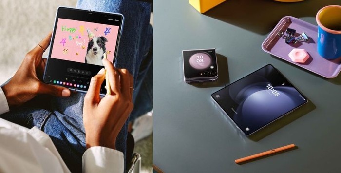 Peta generacija prepogljivih pametnih telefonov Samsung, Galaxy Z Flip5 in Galaxy Z Fold5, je prinesla elegantno obliko, visoko zmogljivost in edinstvene uporabniške izkušnje. Galaxy Z Flip5 je zasnovan kot ultimativna žepna naprava za samoizražanje, s povečanim zunanjim zaslonom, ki omogoča enostavno dostopanje do informacij in hitro odgovarjanje na sporočila brez odpiranja naprave, ter izboljšanimi fotografskimi zmogljivostmi. Galaxy Z Fold5, najtanjši in najlažji zložljiv telefon do sedaj,