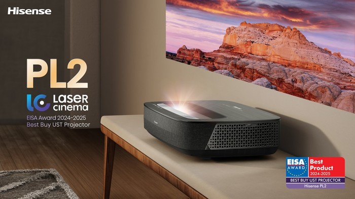 Odlična izbira za domači kino je tudi laserski projektor Hisense Laser Cinema PL2, ki je prejel nagrado EISA Best Buy UST Projector 2024–2025. Z lasersko tehnologijo X-Fusion™ dosega širok barvni spekter, tehnologija Ultra Short Throw pa zagotavlja slike v velikosti od 80 do 150 palcev tudi v manjših prostorih. Dva vrhunska zvočnika s tehnologijo Dolby Atmos zagotavljata močen in kakovosten zvok, ki se ujema z osupljivo sliko.