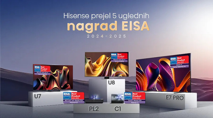 4. 9. 2024 - Hisense, vodilni svetovni proizvajalec gospodinjskih aparatov in potrošniške elektronike, je prejel številne prestižne nagrade organizacije Expert Imaging and Sound Association (EISA) za obdobje 2024–2025. Te nagrade poudarjajo neomajno zavezanost podjetja Hisense inovacijam in tehnološki odličnosti pri zagotavljanju izjemne vizualne in zvočne izkušnje uporabnikom po vsem svetu.