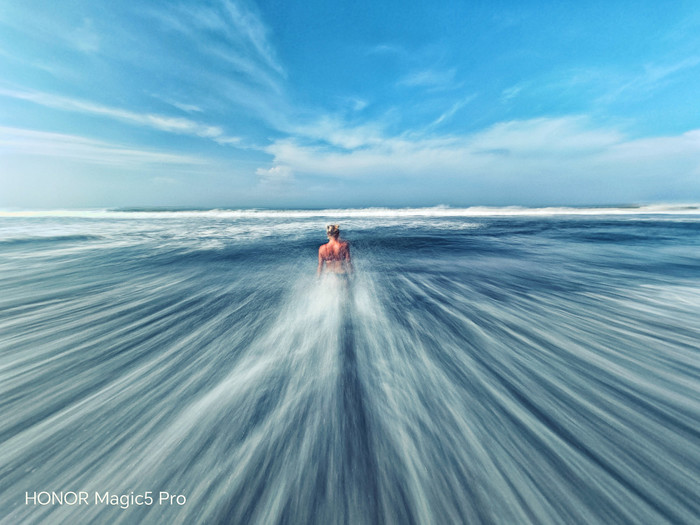 obožuje ocean in s fotografijami sem želel pokazati, kako zelo ga obožuje ocean in kako v njem uživa. Uporabil sem funkcijo dolge osvetlitve telefona HONOR Magic5 Pro,« je povedal Nelomh.
