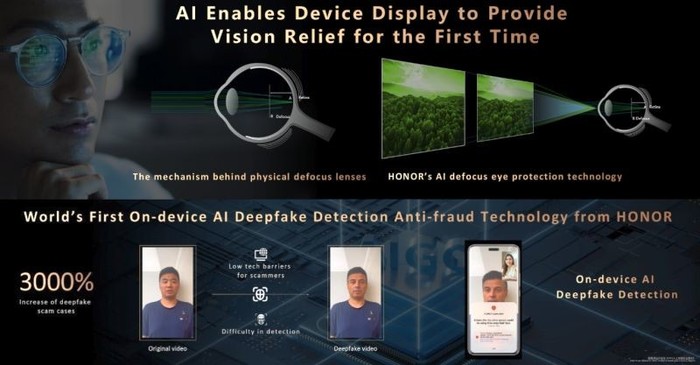 HONOR je obšel tveganja, ki jih predstavlja tehnologija umetne inteligence v oblaku, ki temelji na "deepfake", in predstavil tehnologijo AI Deepfake Detection. Da bi preprečil goljufije in odkril digitalno manipulirano vsebino, AI Deepfake Detection preučuje informacije po posameznih sličicah, kot so očesni stik, osvetlitev, jasnost slike in predvajanje videoposnetka, ter tako prepozna napake, ki jih človeške oči ne opazijo. Poleg tega je bila AI Deepfake Detection usposobljena za