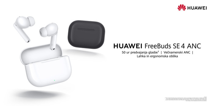 23. 10. 2025 - Huaweieve brezžične stereo slušalke z aktivnim odpravljanjem hrupa so se že trdno uveljavile med navdušenci nad kakovostno avdio opremo. Zdaj pa proizvajalec predstavlja še izjemna modela FreeBuds SE 4 ANC in FreeBuds 7i, ki prinašata odlično razmerje med ceno, zmogljivostjo in udobjem. Huawei FreeBuds SE 4 z ugodno ceno 59 evrov sodijo med cenovno dostopnejše brezžične slušalke, kar pa ne pomeni, da pri kakovosti sklepajo kompromise. Gre za ene redkih v tem cenovnem razredu, ki ponujajo aktivno dušenje hrupa (ANC). Funkcijo, ki postaja poleg kakovosti zvoka ena najpomembnejših lastnosti sodobnih slušalk. Huawei FreeBuds 7i so z 99 evri nekoliko dražje, vendar so opremljene z napredno tehnologijo, ki zagotavlja še čistejši in bogatejši zvok ter boljšo uporabniško izkušnjo.