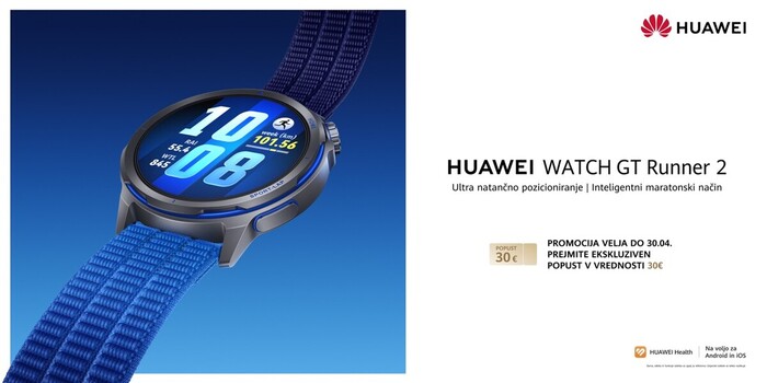 Huawei Watch GT Runner 2 je že na voljo po priporočeni maloprodajni ceni 399 evrov. Do konca meseca aprila ste upravičeni do popusta v vrednosti 30 evrov, kar pomeni, da boste zanjo plačali zgolj 369 evrov.