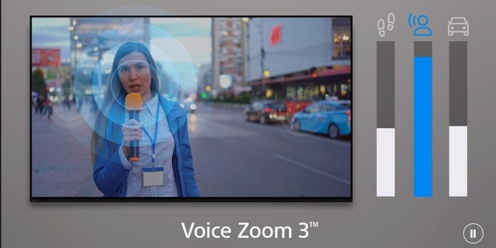 Sonyjeva funkcija Voice Zoom 3 z algoritmi umetne inteligence prepozna dialog oseb ter poviša ali zniža njegovo glasnost, da so tudi najkrajši dialogi dobro in razločno slišni. Odlično deluje v povezavi z izdelki za domači zvok BRAVIA Theatre.[2]