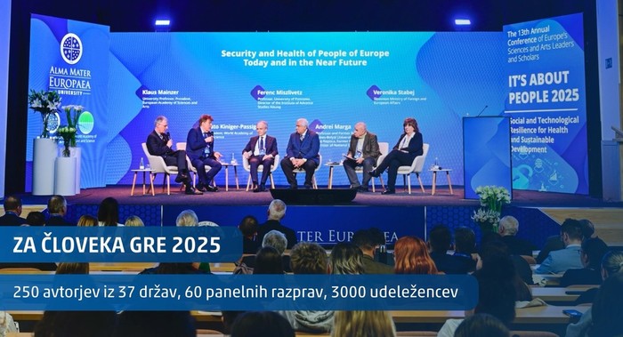 19. 3. 2025 - Med 14. in 19. marcem je na Univerzi Alma Mater Europaea potekala 13. mednarodna znanstvena konferenca "Za človeka gre 2025", ki je združila 250 avtorjev iz 37 držav in ponudila 60 panelnih razprav. Dogodek je v živo in prek spleta spremljalo skoraj 3000 udeležencev.