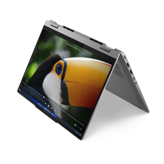 Lenovo ThinkBook 14 2-in-1 Gen 4 navdušuje z najnovejšo zasnovo tečajev zaslona ter se ponaša z elegantnim in tankim profilom, saj je debel le 16,85 mm in lahkim ohišjem, ki tehta le 1,64 kg. Ozki okvirji zaslona izboljšajo vizualno izkušnjo, naprava pa se ponaša z 90-odstotnim razmerjem med zaslonom in ohišjem, kar je za 14-palčni zaslon z razmerjem stranic 16 : 10 odlični dosežek. Lenovo, znan po pozornosti do podrobnosti, je predstavil nov 1,5-milimetrski ugrez tipk na tipkovnici za še