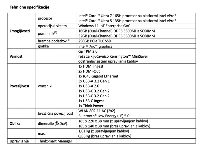 ThinkSmart Manager Premium. Vključena je tudi storitev Lenovo Smart Collaboration Professional Services Deploy and Maintain, ki zagotavlja hitro in učinkovito uvajanje naprave v poslovno okolje.