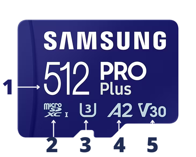 4. Razred zmogljivosti aplikacije – določa najmanjšo hitrost naključnih in zaporednih operacij, ki je potrebna za izpolnitev zahtev glede časa izvajanja zagonskih ukazov in shranjevanja podatkov pod določenimi pogoji. Vse to poteka hkrati z zagotavljanjem prostora za shranjevanje fotografij, videoposnetkov, glasbe, datotek in drugih pomembnih informacij. Takšne kartice so odlična izbira za pametne telefone in ročne konzole, ki poganjajo aplikacije pri različnih hitrostih branja in pisanja,