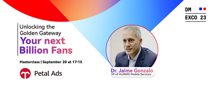Dr. Jaime Gonzalo bo na sejmu DMEXCO 2023 vodil tečaj, ki bo razkril strategije in storitve, ki jih ponuja Petal Ads in omogočajo strankam, da dosežejo občinstvo po vsem svetu. Te zajemajo metode oblikovanja blagovnih znamk in spodbujanja rasti, ki segajo v širok spekter različnih panog in omogočajo širitev v globalno trženje, s ključnim poudarkom na usmerjanju na kitajski trg. Tečaj bo v sredo, 20. septembra, ponudil poglobljeno praktično izkušnjo z nasveti s področja oglaševanja. Več