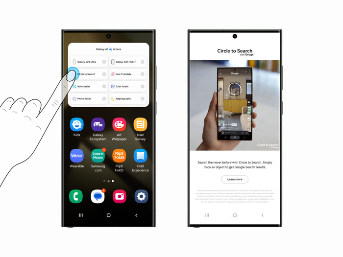 - Iskanje v Googlu z obkroževanjem: Obkrožite stvar, ki vam pade v oči, in iščite kar koli na zaslonu, ne da bi preklapljali med aplikacijami. Ko uporabniki v objavi na družabnem omrežju vidijo nekaj, kar jim je všeč, z dolgim pritiskom na gumb Domov in obkroženjem slike dobijo takojšnje in uporabne rezultate iskanja na želeno temo. Odvisno od lokacije bodo na voljo tudi rezultati, ki jih poganja umetna inteligenca.