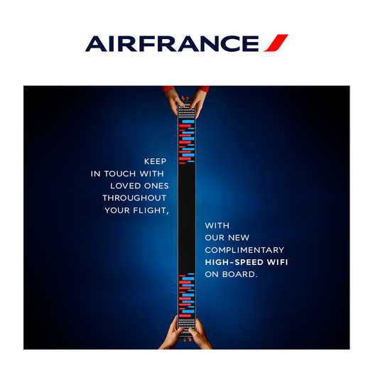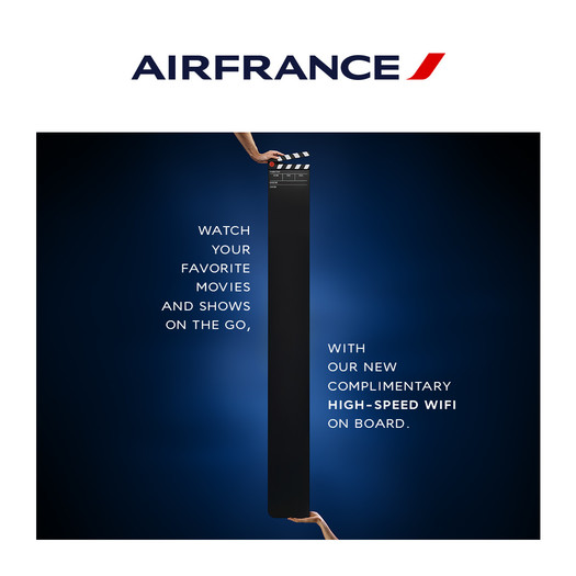 Air France bo do konca leta ponudil hitri brezžični internet na krovu 30 odstotkov svoje flote, do konca leta 2026 pa v celotni floti. V prehodnem obdobju bo družba še naprej ponujala internetno povezavo med letom na krovu letal, ki še niso opremljena s hitrim brezžičnim internetom, in sicer z brezplačno storitvijo za pošiljanje sporočil za člane Flying Blue in plačljivo možnostjo za ostale uporabnike. Storitev hitrega brezžičnega internetnega dostopa že lahko zasledimo na nekaterih letih družbe Air France iz Ljubljane v Pariz in obratno. Do konca leta 2026 pa bo omogočena na vseh letih Ljubljana-Pariz-Ljubljana.