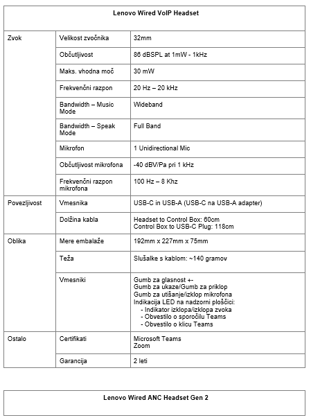- Novi slušalki Lenovo Wired VOIP Headset in Lenovo Wired ANC Headset Gen 2 sta visokokakovostni zvočni rešitvi za profesionalce v hibridnih delovnih okoljih. Ponujata odpravljanje šumov in združljivost s priljubljenimi konferenčnimi platformami.