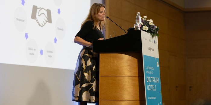 Portorož, 22. 10. 2024; Razvojno-strateški projekt Digitrajni učitelj bo po novem vodil Šolski center Nova Gorica. V prvi polovici 4-letnega projekta se je vanj vključilo več kot 15.000 vzgojiteljev, učiteljev in predavateljev iz 410 vzgojno-izobraževalnih institucij iz vse države. Cilj do leta 2026 je v največji projekt na področju izobraževanja v Sloveniji vključiti več kot 20 tisoč strokovnih delavcev, ki pridobivajo nova znanja s področij digitalizacije, trajnostne in finančne pismenosti za uporabo v igralnicah, učilnicah in predavalnicah. Druga mednarodna konferenca predstavlja mejnik v projektu, saj vzgojno-izobraževalni zavodi začenjajo usposabljanja v svojih kolektivih. Kot je znano, je bila prva polovica namenjena usposabljanjem t. i. multiplikatorjev in prenašalcev znanj, ti pa bodo nove kompetence v nadaljevanju prenesli na svoje sodelavce. Med poglavitnimi cilji projekta je namreč kreiranje samoučečih se skupnosti.