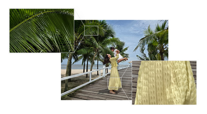 Srce kamer Galaxy Z Fold7 je širokokotna kamera 200 MP, enaka tisti v Galaxy S25 Ultra in senzor z najvišjo ločljivostjo v seriji Z Fold. Z njim lahko zdaj zajamete vse nianse prizora, od bogatih tekstur in barv oblačil na vaših počitniških fotografijah do nežnih obrisov prostrane pokrajine za vami. Tukaj je nekaj ključnih prednosti širokokotne kamere Galaxy Z Fold7: