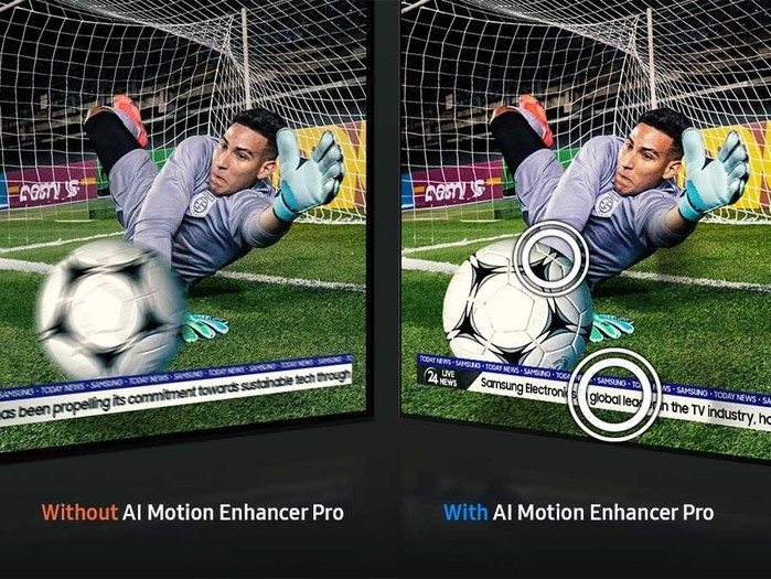 Poleg tega lahko s funkcijo Dinamičen in realističen zvok, ki sledi dogajanju (Object Tracking Sound Pro) zvoke s stadiona prenesete v svoj bivalni prostor. S tehnologijo umetne inteligence se zvok premika skupaj z dogajanjem, ne glede na to, v katero smer gre, kar omogoča večjo potopitev v vsako podrobnost iz vseh kotičkov televizorja. Ne glede na to, ali gre za praznovanje zmagovitega gola ali napetost nervozne množice, ki čaka na kazenski strel, lahko slišite dogajanje iz vsakega kota.