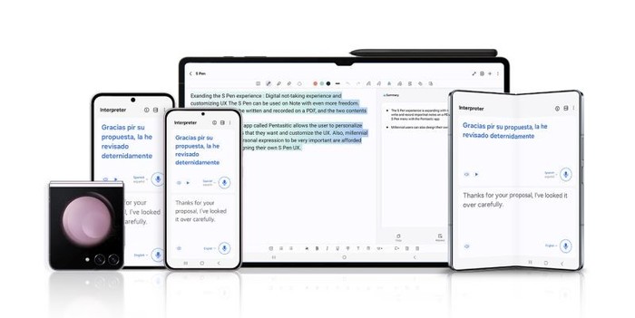Še več uporabnikov telefona Galaxy bo zdaj lahko izkoristilo funkcije Galaxy AI, ki izboljšujejo komunikacijo in so na voljo v modelih s podporo AI. Funkcije vključujejo možnost prilagajanja tona sporočil in prevajanje sporočil v 13 različnih jezikih z uporabo funkcije Pomoč za pisanje (Chat Assist)[3]. Uporabniki naprav Galaxy lahko izkusijo moč interakcij v realnem času s pomočjo funkcije Sprotni prevod (Live Translate)[4], ki zagotavlja glasovne in besedilne prevode za telefonske klice. S
