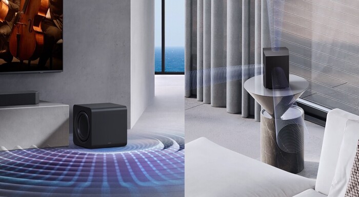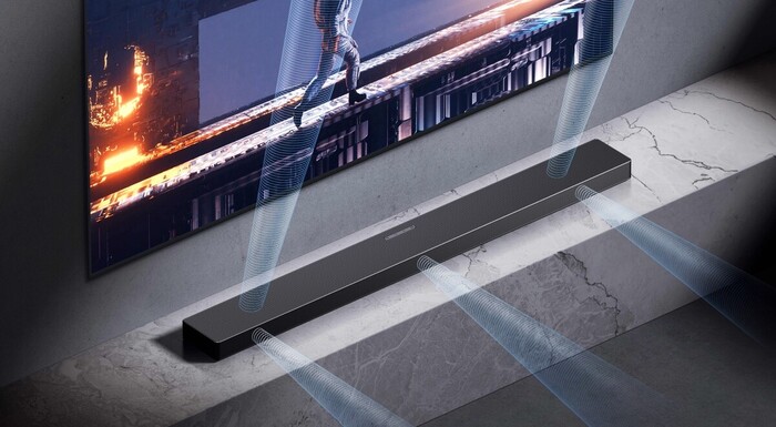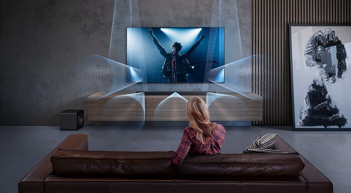 Sistem razširi stereo sliko, zagotavlja jasen in osredotočen vokal v sredini, hkrati pa instrumentom omogoča, da se razporedijo po širšem zvočnem prostoru. Z uporabo načina Prilagodljiv zvok (Adaptive Sound) umetna inteligenca samodejno optimizira ravnovesje glede na žanr. Obstoječi in bodoči lastniki Samsung televizorjev od leta 2021 naprej lahko brezžično povežejo zvočnik soundbar Samsung z Wi-Fi povezavo in omogočijo Q-Symphony brez dodatnih kablov ter brez dodatne zakasnitve. Tako ostane vaš bivalni prostor urejen, vi pa lahko uživate v nadgrajeni zvočni izkušnji.