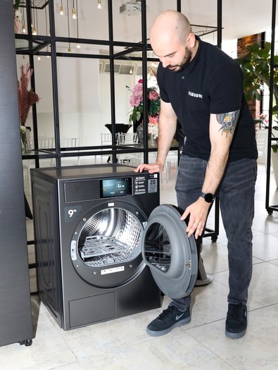 Gostje so imeli priložnost preizkusiti novi Bespoke Jet AI Ultra, najzmogljivejši in najpametnejši Samsung pokončni sesalnik. Z močjo sesanja do 400 W močno olajša delo, napreden način delovanja z umetno inteligenco 2.0 pa omogoča hitro in samodejno prilagajanje različnim površinam in načinu uporabe. Tekoče prehajanje med načini zagotavlja vrhunske rezultate ob maksimalnem udobju. Zasloni so se razširili tudi na druge gospodinjske aparate. Funkcija AI Home na novih Samsung pralnih strojih deluje kot intuitiven upravljalni vmesnik, ki prek zaslona na dotik nudi jasne informacije in enostavno upravljanje. Prilagodi pralne cikle tako, da si zapomni vaše navade, predlaga optimalne programe in po vsakem pranju celo dostavi podrobno poročilo.