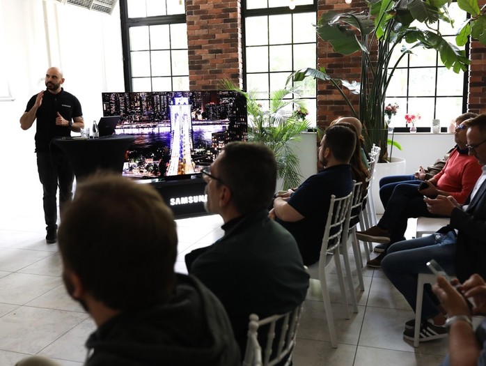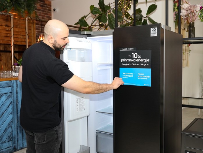 Ljubljana, 13. maj 2025 - V catering Labu v Ljubljani je podjetje Samsung Electronics danes premierno predstavilo svojo novo linijo televizorjev in bele tehnike v Sloveniji. Dom z vizijo umetne inteligence prinaša koncept, v katerem vaš dom deluje za vas. Poenostavlja vsakdan, ga olajša in naredi zabavnejšega. Kako to izgleda v praksi, je zbranim skozi kratko predstavitev prikazal Samsung trener Miha Pratneker.