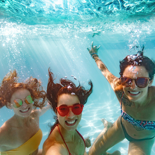 Ljubitelji podvodnega sveta izberite kamero z vodotesnim ohišjem in preverite, do katere globine se lahko potopite. Pri tem ne pozabite, da ima voda zelo močan modri filter, zato globlje, kot smo, manj barv vidimo. Že 2 metra pod površino izgine rdeča barva, sledita ji oranžna in rumena. Na globini 40 metrov pod površjem pa lahko vidite le modro barvo. Prav zato je priporočljivo, da posnetke naredite tik pod vodno gladino.
