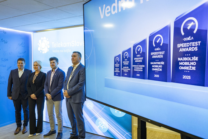 Ljubljana, 9. oktober 2025 – Telekom Slovenije je prejel kar pet prestižnih mednarodnih priznanj Speedtest Awards vodilnega svetovnega podjetja za testiranje internetnih povezav Ookla. Ta neodvisna potrditev, ki temelji na več kot 1,2 milijona testnih meritev in več kot 25 milijonih podatkov o pokritosti, dokazuje, da Telekom Slovenije svojim uporabnikom zagotavlja najboljšo celovito mobilno izkušnjo v državi.