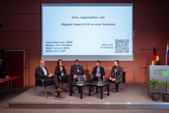 Ljubljana, 12. februar 2024 - Na nemško-slovenskem forumu so se vizionarji in strokovnjaki za umetno inteligenco srečali z vodilnimi gospodarstveniki in političnimi odločevalci v Sloveniji in Nemčiji s ciljem izmenjave znanja na področju umetne inteligence in prikaza primerov uporabe, ki se že izvajajo v vsakdanjem poslovnem življenju. Udeleženci so se strinjali o nujnosti regulacije UI z namenom preprečevanja zlorab. Forum so organizirali Slovensko-nemška gospodarska zbornica (AHK Slovenija), nemško veleposlaništvo v Ljubljani, GZS - Združenje za informatiko in telekomunikacije ter GZS - Zbornica elektroindustrije.