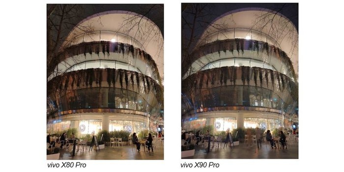 Primerjava posnetkov, ustvarjenih pri šibki svetlobi in ponoči, prav tako dokazuje, da vivo X90 Pro v primerjavi z X80 Pro lahko izboljša kakovost fotografije v vseh pogledih. Urbani posnetki pri šibki svetlobi prinašajo vrhunsko upodobitev bogatih in globokih odtenkov modrega neba, kot je razvidno s fotografij. Na fotografijah, posnetih z X90 Pro, je predel neba detajlnejši ter ima več podrobnosti v sencah, ki ustvarjajo naravnejši videz slik.