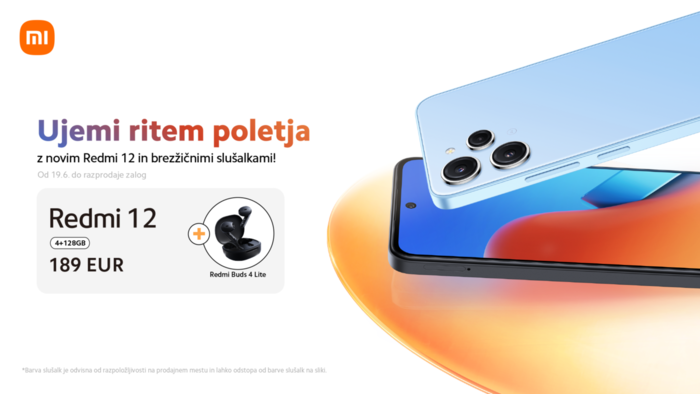 Redmi 12 je na voljo v eni različici - 4 GB + 128 GB že od 189 EUR. Redmi 12 je brezplačno na voljo v paketu z Redmi Buds 4 Lite.