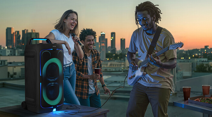 Prav tu zvočnik Sound Tower zares zasije. Z dinamično osvetlitvijo Party Lights, ki se odziva na ritem glasbe, se celoten prostor preobrazi. Stene, tla in obrazi so nežno osvetljeni v popolni sinhronizaciji z vsakim ritmom. Ne gre več le za poslušanje, temveč za doživljanje glasbe. Ko pa se energija še stopnjuje, funkcije, kot sta karaoke ali DJ-u podobno upravljanje, povabijo prav vse, da se vključijo. Gostje postanejo nastopajoči, trenutki pa se spremenijo v spomine.