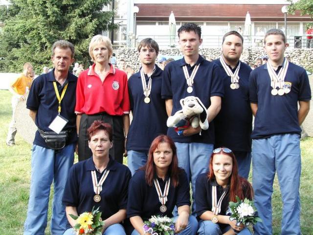 Fotografija: dobitniki medalj, predsednica lokostrelske zveze Slovenije in vodja reprezentance