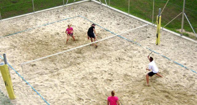 Za igranje tenisa na mivki se uporabljajo posebni loparji, ki so narejeni prav za igranje tenisa na mivki.
