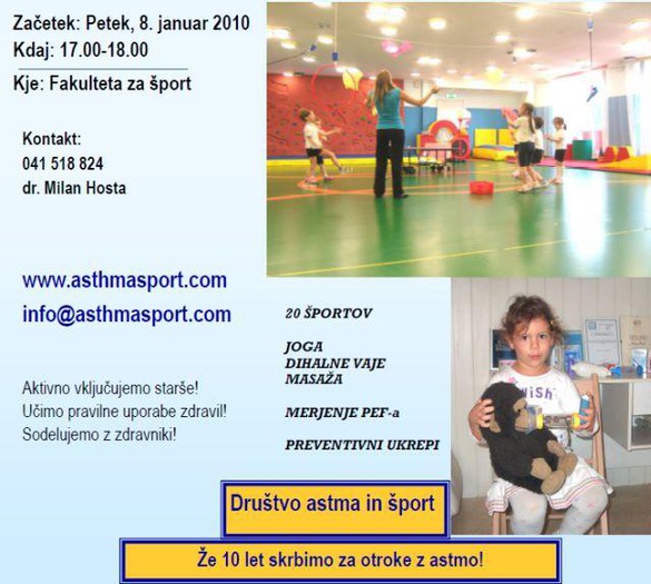 Prijave zbiramo do zapolnitve mest. Kontakt dr. Milan Hosta, info@asthmasport.com oz. 041 518 824.