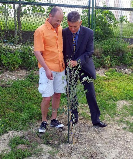 2: Borut Bilač ob svoji oljki, v družbi Ivana Veštića, predsednika atletskega kluba Split ter svetovalca za šport v Splitu