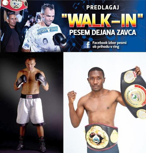 "Navijači so zame nekaj posebnega, dajejo mi posebno energijo in zagon! In izvrstno se mi zdi, da jih lahko aktivno vključim pri izboru pesmi, ki me bo proti Uushoni pospremila v ring. Glede na to, da nas je na moji Facebook strani zelo veliko, se mi zdi ta kanal nadvse primeren za takšno akcijo. Veselim se dobrih predlogov in končnega izbora," je povedal Dejan Zavec (31 zmag, 18 s KO, 2 poraza), ki se ta čas v Nemčiji pripravlja na obračun z Bethuelom Uushono (25 zmag, 8 s KO, 1 poraz, 1
