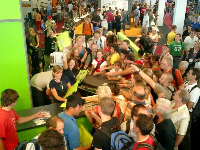 Lanska kolekcija Elanovih koles je poleg modelov, predstavljenih na EuroBikeu, bogatejša še za deset novih modelov, ki bodo navdušili tako profesionalne kot tudi rekreativne kolesarje. Elanova kolesa bodo z 2005 naprodaj v Italiji, posebna pozornost še naprej namenjena nemškemu trgu. (Fotografija: Obiskovalci sejma EuroBike2004 se gnetejo pred Elanovim informacijskim pultom. Avtor fotografije: Harald Nesswitz) Družba Elan Bikes se je kolesarskega sejma EuroBike 2004, ki je potekal med 2. in 5.