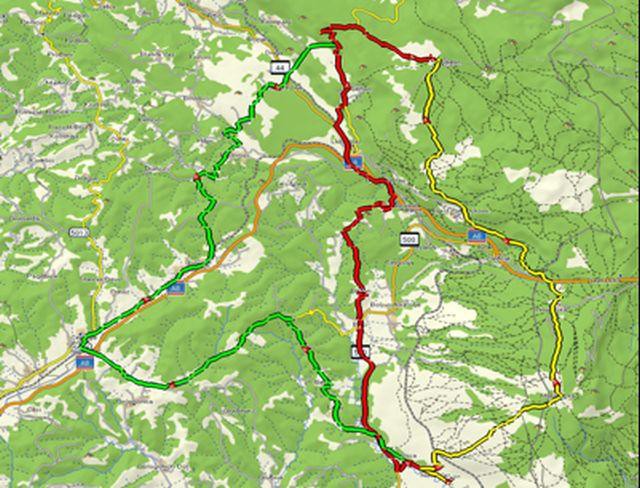 Druga fotografija: BASECAMP – PRIMER NAČRTOVANJA POTI ACTIVEROUTING, RAZLIČNO NAČRTOVANJE POTI ZA HOJO (RDEČE), PLANINSKO POHODNIŠTVO – TREKING (RUMENA) IN KOLESARJENJE (ZELENA).