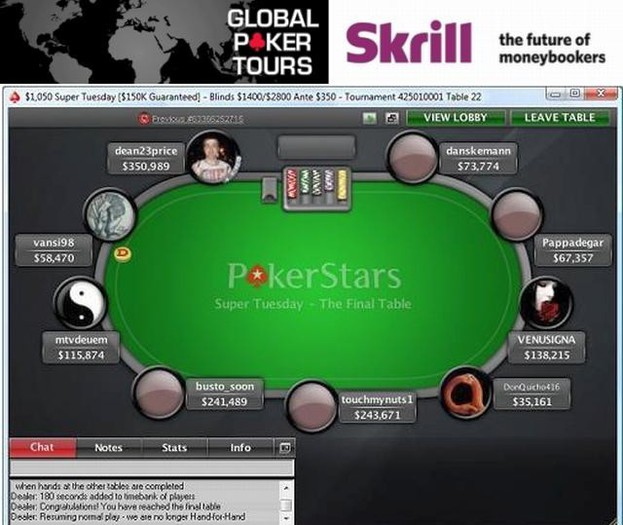 »Veseli in zadovoljni smo, da smo se kot uradni ponudnik plačilnih storitev pridružili PokerStars Evropski poker turneji, ki je danes eden izmed največjih poker turnirjev na svetu. Skrill ponuja preprosto in varno upravljanje s plačili, zato smo danes ena izmed najbolj priljubljenih storitev za nakazila in izplačila v spletni poker skupnosti. S sponzorstvom EPT-ja bomo svoj položaj zagotovo še dodatno okrepili in poker igralcem omogočali preprosto upravljanje s spletnimi plačili,« dodaja Nikolai Riesenkampff, eden od predsednikov uprave podjetja Skrill. V okviru sponzorske pogodbe bo Skrill s svojimi predstavniki prisoten na vseh turnirjih EPT, kjer bodo novim in obstoječim strankam svetovali pri upravljanju njihovega računa, jim pomagali pri postopku registracije in jim ponudili tudi razne programe zvestobe.