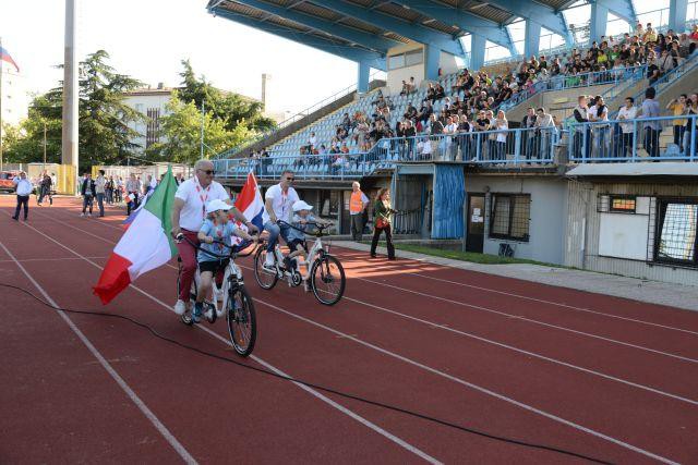 so v spremstvu staršev uradno odprli turnir, ko so s posebnimi tandemskimi kolesi (Hugbike) s slovensko, hrvaško in italijansko zastavo odpeljali častni krog okoli nogometne zelenice.