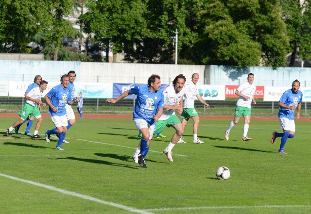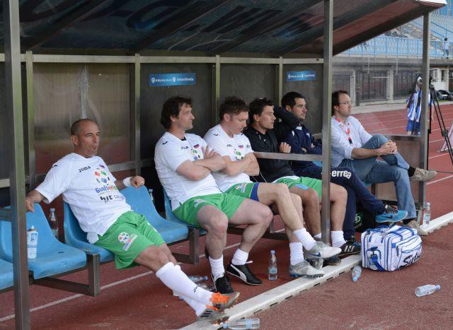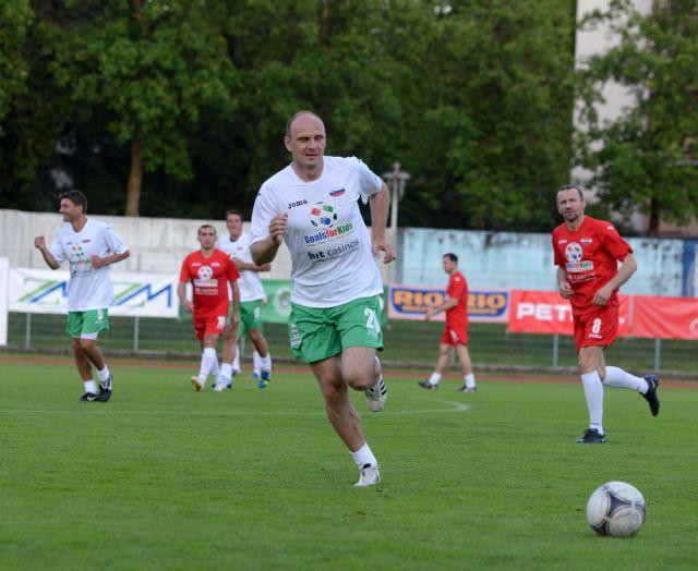 Med tem so se na vstop na igrišče že pripravljali člani slovenske (Milenko Ačimović, Marinko Galić, Mladen Rudonja, Milan Osterc, Saša Gajser, Sašo Udović, Ermin Šiljak, Stipe Bulajić, Đoni Novak, Mladen Dabanović, Matej Mavrič, Alfred Jermaniš, Grega Židan, Vili Bečaj, ob igrišču pa jih je spremljal tudi Zlatko Zahović) in italijanske ekipe (Roberto Pampa Sosa, Andrea Carnevale, Benito Carbone, Valerio Bertotto, Fulvio Pea, Simone Pavesi, Massimo Bonani, Gianluca Collonnelo, Marco Ascenzi, Andrea Mazzantini, Rodolfo Vanoli, Gianluca Colonnello, Paolo Ghisoni, Paolo Miano, Alex Brunner, Denis Godeas, Guerino Pelizzoli … ter komentatorja televizije Sky Stefano de Grandis, Federico Mosca). Obiskovalce, skupaj se jih je po oceni organizatorjev nabralo okoli 1000, je s prvim golom na turnirju razveselil Mile Ačimovič. Slovenija pa je prvo tekmo zasluženo dobila tudi po zaslugi zadetka, ki je padel v kombinaciji Rudonja-Pavlin ter z golom za končni izid 3:0, ki ga je ponovno prispeval Ačimović.