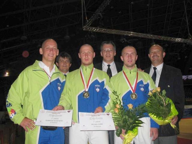 Kink srečala s španskima reprezentantoma, ki pa kljub odličnemu nastopu nista bila kos našima dvema - dvoboj se je zaključil z rezultatom 99:74. Zlatima Slovencema je medalji podelil častni predsednik mednarodne ju-jitsu zveze JJIF, g. Rinaldo Orlandi, zlato medaljo-plaketo pa je prejel tudi selektor za duo sistem in trener zmagovitega para. Damir Urek. Konkurenca na poti do medalj je bila prehuda za ostale slovenske tekmovalce prvega tekmovalnega dne: Tamaro Strnad, Primoža Manojloviča in