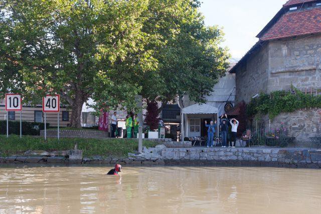 Aleksander Kamenik, ki je včeraj zvečer ob 20. uri začel s 48-urnim hiper-plavalskim maratonom, po reki Dravi plava že 20 ur. Zaenkrat se počuti dobro in računa na to, da bo zahtevno plavalsko preizkušnjo opravil v načrtovanih okvirjih. Najbolj zahtevna bo današnja noč in zadnjih nekaj ur. Po zadanem načrtu bo na kopno spet stopil jutri, torej 3.7., ob 20. uri zvečer.