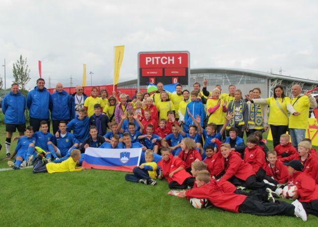 V včerajšnjih dopoldanskih urah so tako igralci Domžal odigrali še tekmo za tretje mesto. Nasprotnik pa nihče drug kot londonski Arsenal. Na tej tekmi so Domžalčani povsem prevladali in nadigrali Arsenal že v prvih 15 minutah. Strelci zadetkov Mlakar v 6., Kondič v 10. in Kene v 11. minuti so poskrbeli, da že od samega začetka ni bilo dvoma o tem, kdo si zasluži bronasto medaljo. Ob 18:15 uri se bosta na slovitem Old Traffordu za zlato udarila še italijanski AC Milan in zagrebški Dinamo.